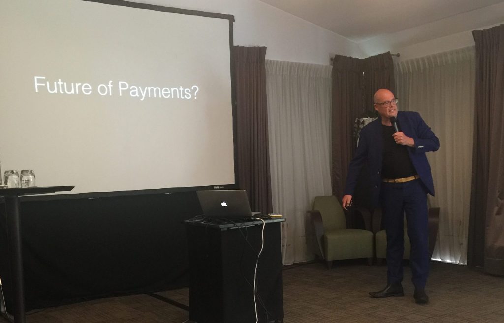 Simon schetste de afgelopen honderd jaar van het betalingsverkeer en de historische aanleiding voor de huidige collectiviteit: de collectieve sturing. Vincent keek daarna vooruit, naar de mogelijke toekomst en naar relevante trends. Hij gaf zijn visie op crypto-currencies en blockchains en op een deeleconomie met ‘connected’ maar verder volledig autonoom beslissende en betalende apparaten: de zelfsturende collectiviteit .