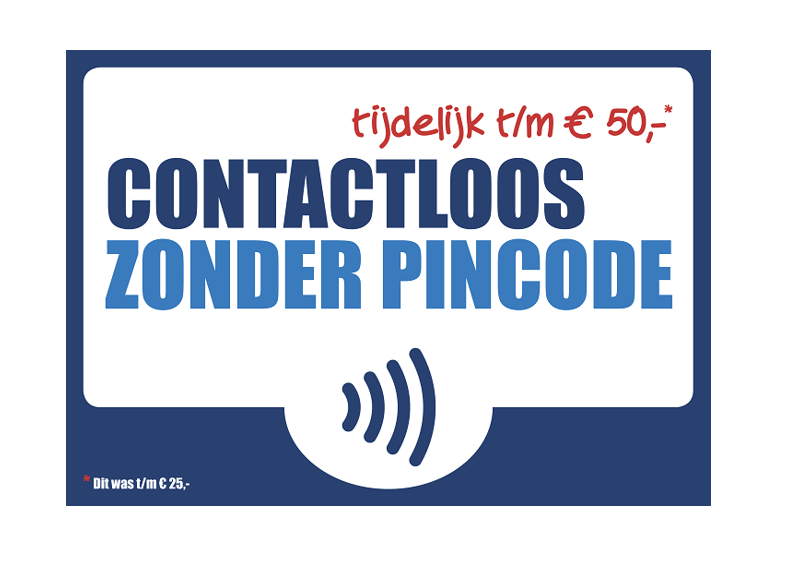 Tijdelijk contactloos afrekenen zónder pincode t/m 50 euro per betaling