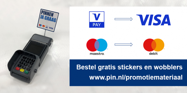 Aan het einde van het jaar kan bij betaalautomaten niet alleen met Maestro en V PAY gepind worden, maar ook met Visa Debit of Debit Mastercard. Nu is dat vooral relevant voor buitenlandse klanten en gasten, over een tijdje – zodra ook Nederlandse banken op grote schaal pasjes met die merken uitgeven – ook voor Nederlanders. Er verandert ook dan voor de Nederlandse pashouder aan de toonbank overigens niets. Juist daarom ook is het belangrijk dat ondernemers duidelijk laten zien dat zij de nieuwe merken accepteren. Vandaar dat wij gratis promotiemateriaal ter beschikking stellen wij gratis promotiemateriaal ter beschikking stellen. Raamstickers, gewone stickers en wobblers (Engels én Nederlands). Ondernemers kunnen meteen ook de veel gestelde vragen over de nieuwe passen bekijken.