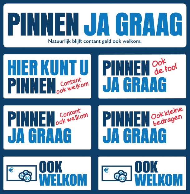 Om aan klanten duidelijk te maken dat ook met contant geld betaald kan worden, zijn vanaf nu via de webshop van PIN.nl nieuwe stickers verkrijgbaar. Er zijn verschillende varianten, zodat ondernemers de sticker kunnen kiezen die het beste bij hun onderneming past. Alle varianten staan op één stickervel. De stickervellen zijn gratis te bestellen via Promotiemateriaal – PIN.NL . Daarnaast worden ze gratis meegezonden met bestellingen van andere stickers via de webshop op PIN.NL. Tot slot zijn ze ook nog eens aangeboden aan brancheorganisaties en betaalautomaatleveranciers voor verspreiding aan hun leden en klanten.