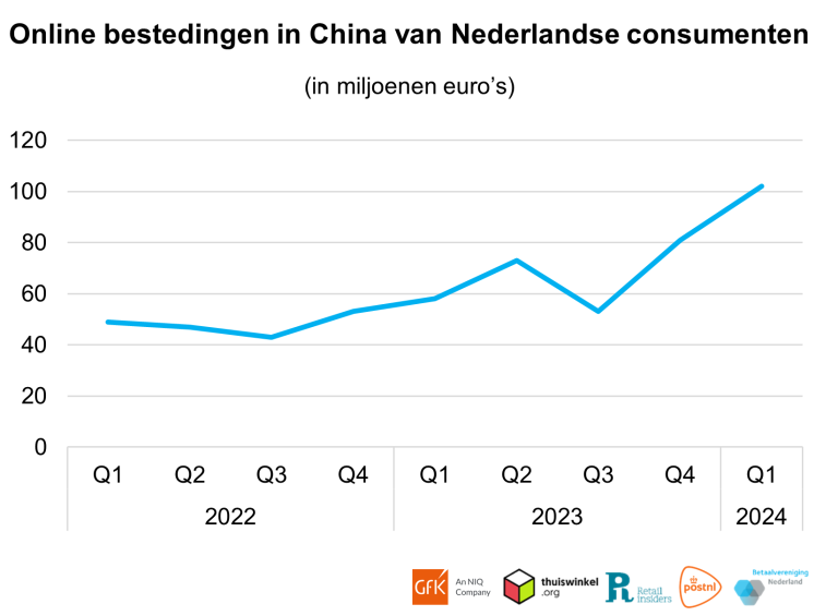 Online bestedingen van Nederlandse consumenten in China zijn in het eerste kwartaal van 2024 bijna verdubbeld