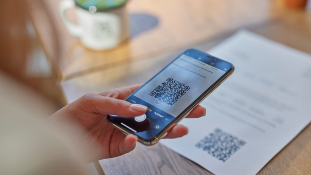 A QR code is a type of barcode with squares instead of bars. You can scan them with a smartphone, using various apps or directly with the camera in the device. QR codes usually contain a web address (which opens in your mobile web browser after scanning) but can also contain payment details, contact and location details, access cards, and product codes.