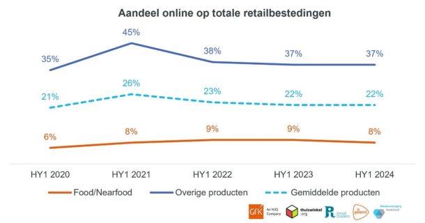 In the first half of 2024, online retail spending by Dutch consumers reached €17.5 billion, 6% more than in the same period last year. In total, Dutch consumers spend almost 1/3rd of all their retail spending online. The number of online purchases in the first half year actually decreases by 2% to 173 million. This is according to the latest figures from the Thuiswinkel Markt Monitor, the research into online consumer spending in the Netherlands. This research is conducted by GfK on behalf of Thuiswinkel.org and Retail Insiders and in cooperation with PostNL and the Dutch Payments Association.
